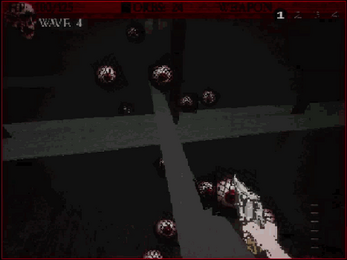 nice gameplay! yes, the idea is to get buffed up and reach wave 20, also, the devil daggers is a weapon that can spray fire but also does a shotgun blast in single click, a mechanic from the game with the same name.